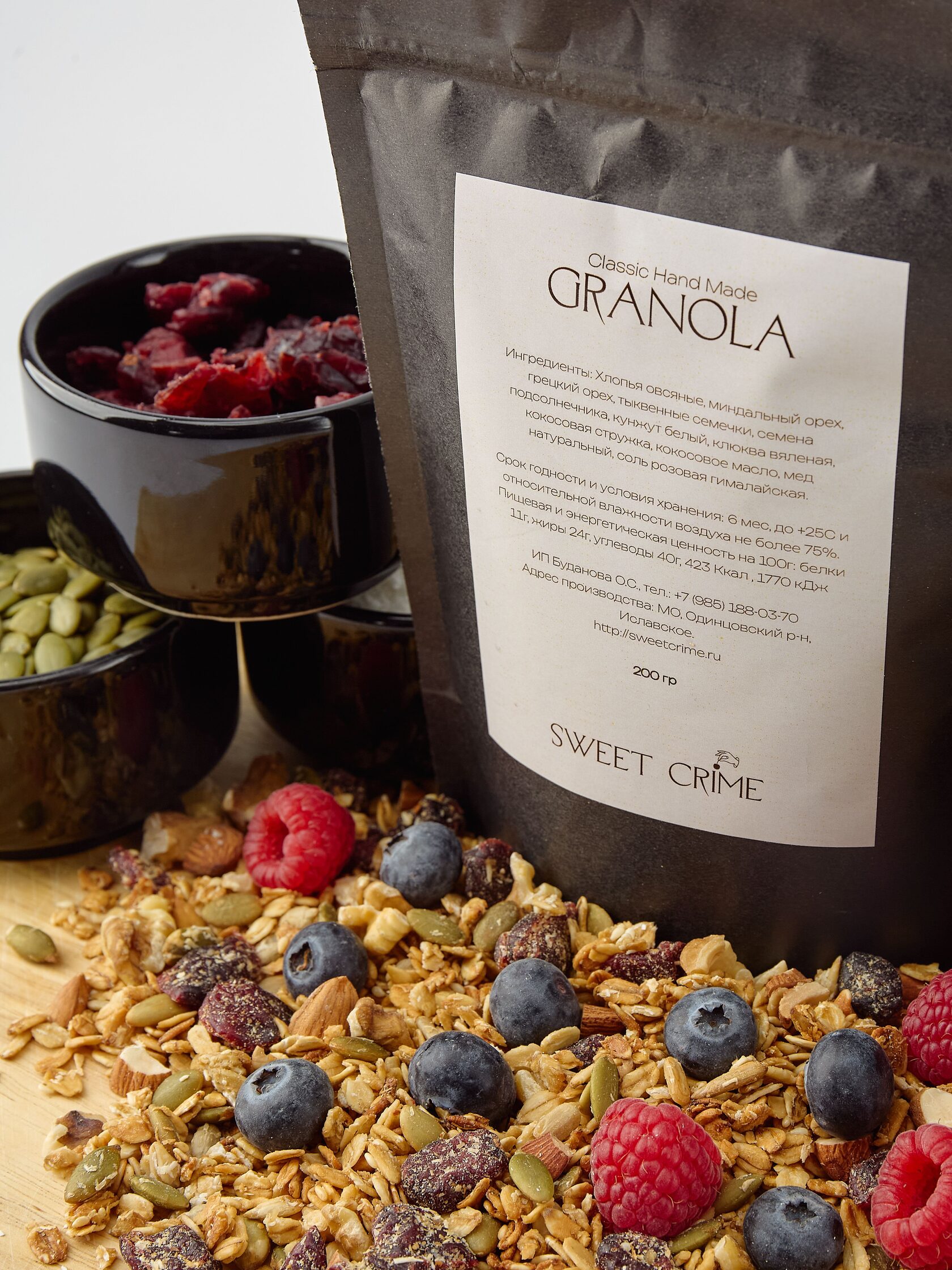 SweetCrime — это протест против безвкусной «пользы» и приторных десертов. Это — золотая середина. Дерзкая, хрустящая и абсолютно честная. Содержит витамин L.